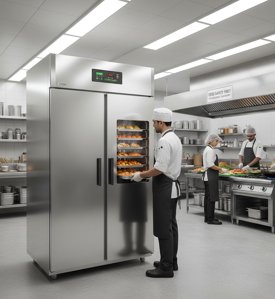 A Blast Chiller is an indispensable asset for any professional kitchen in India, from cloud kitchens to five-star hotels. Designed to dramatically reduce the temperature of hot or cooked food, our chillers move it through the "danger zone" (60∘C to 5∘C) in under 90 minutes. This process is crucial for preventing bacterial growth, ensuring food safety compliance, and meeting the highest FSSAI standards. Investing in a quality commercial blast chiller not only preserves the food's original texture, flavour, and nutritional value but also significantly extends its shelf life. Ideal for caterers and hospitality businesses looking to streamline prep and reduce food wastage.